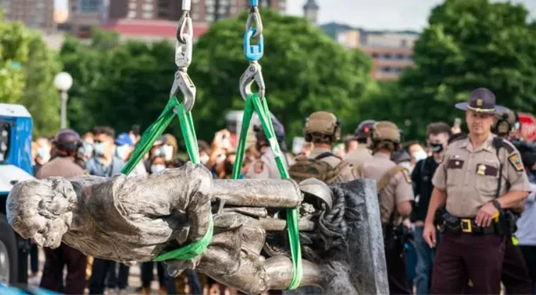 ST. PAUL, Minn. – More than a year after it was pulled down during a protest, the fate of the Christopher Columbus statue on the Minnesota Capitol grounds is still unresolved.
