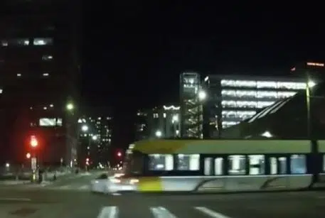 Downtown light rail service was paused during crash cleanup. Police said they cleared the scene by 10:30 p.m. and are investigating.