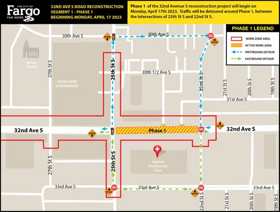 FARGO (KFGO) – City of Fargo contractors will host biweekly information meetings regarding the 32nd S Ave. reconstruction project currently underway.