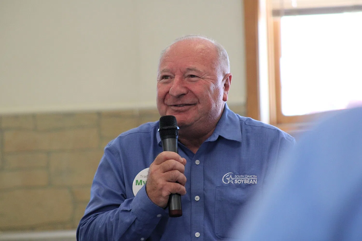 Jerry Schmitz, executive director of the South Dakota Soybean Association and South Dakota Soybean Checkoff, participates in a roundtable discussion hosted by Farmers for Free Trade on Sept. 6, 2025, at the Central States Fairgrounds in Rapid City. (Seth Tupper/South Dakota Searchlight)