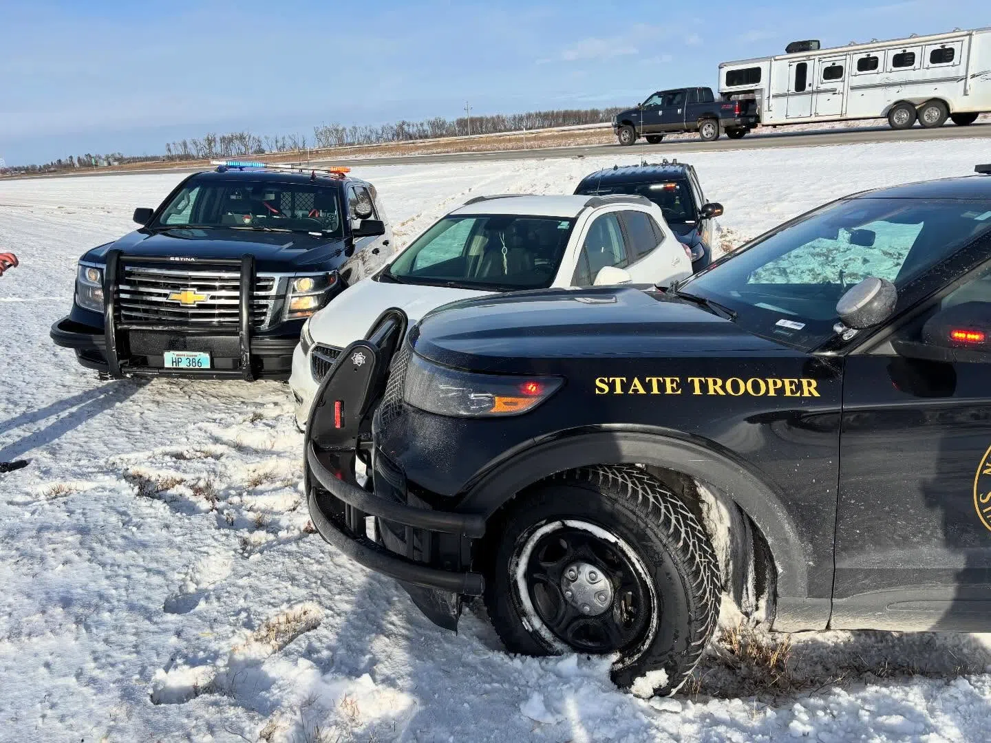 The Highway Patrol says troopers eventually used a controlled intervention to stop the vehicle at the north end of Cass County.