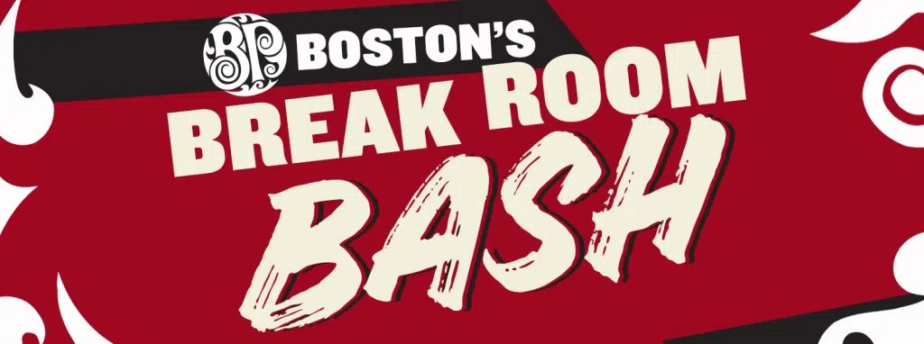 Toss that boring breakroom lunch! Forget the leftover let down! Boston’s Pizza and Sports Bar wants to turn you office into a Boston’s Breakroom Bash!