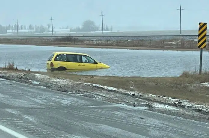 Hydroplaning possible cause of vehicles ending up in flooded ditches on I-29 north of Fargo