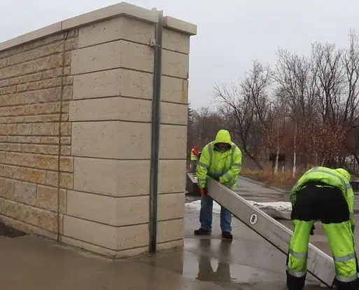 Fargo crews install flood wall closing 1st Avenue North bridge